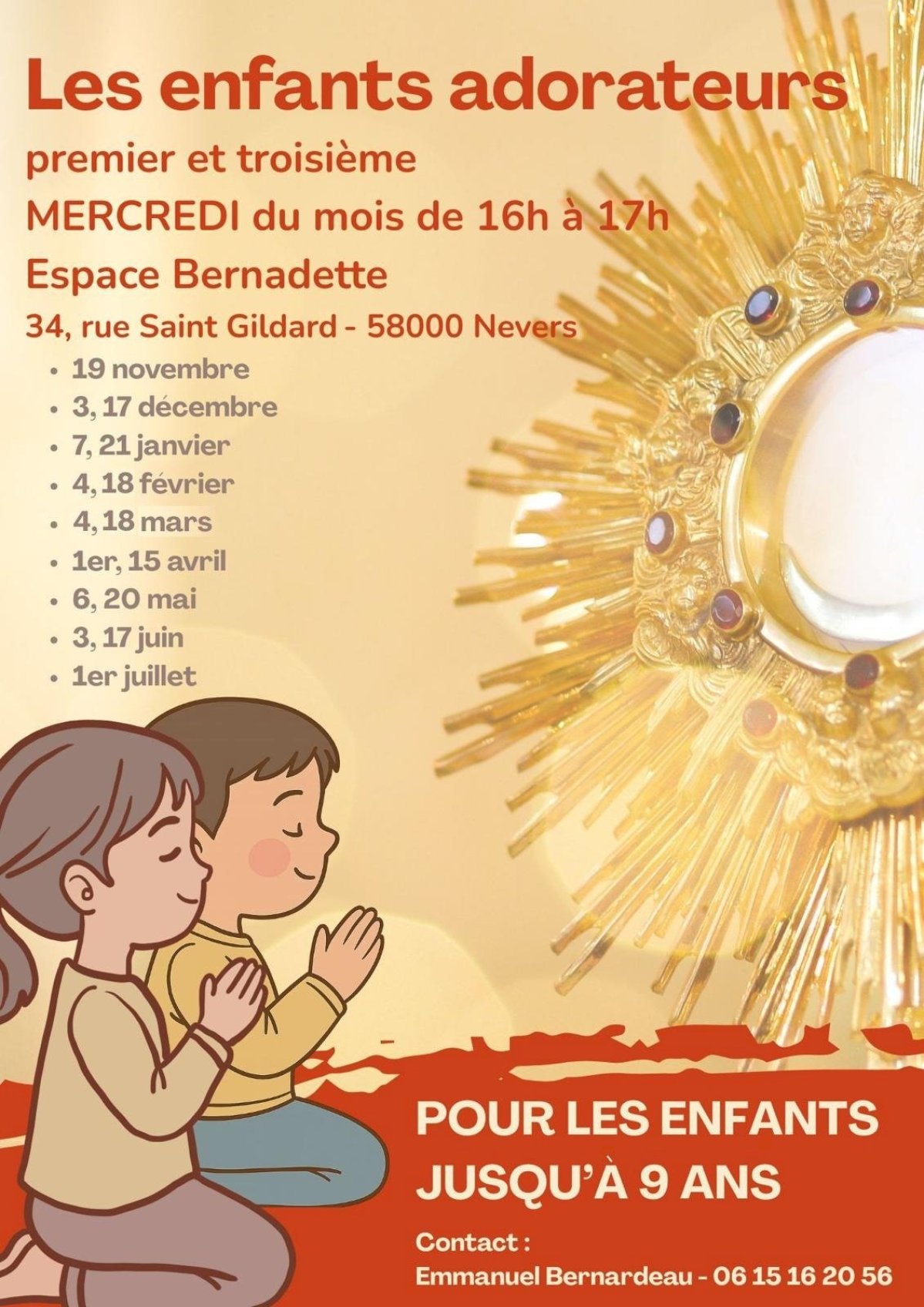 Adoration le Lundi de 19h à 20h30 et le Jeudi de 13h à 14h.